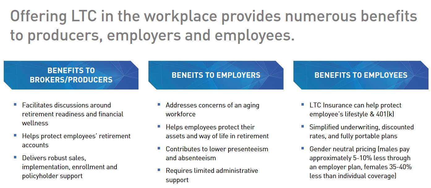 For all of these reasons, Group long-term care insurance is a "Win-Win-Win" opportunity for producers, employers and employees. It's time to get the conversation going!